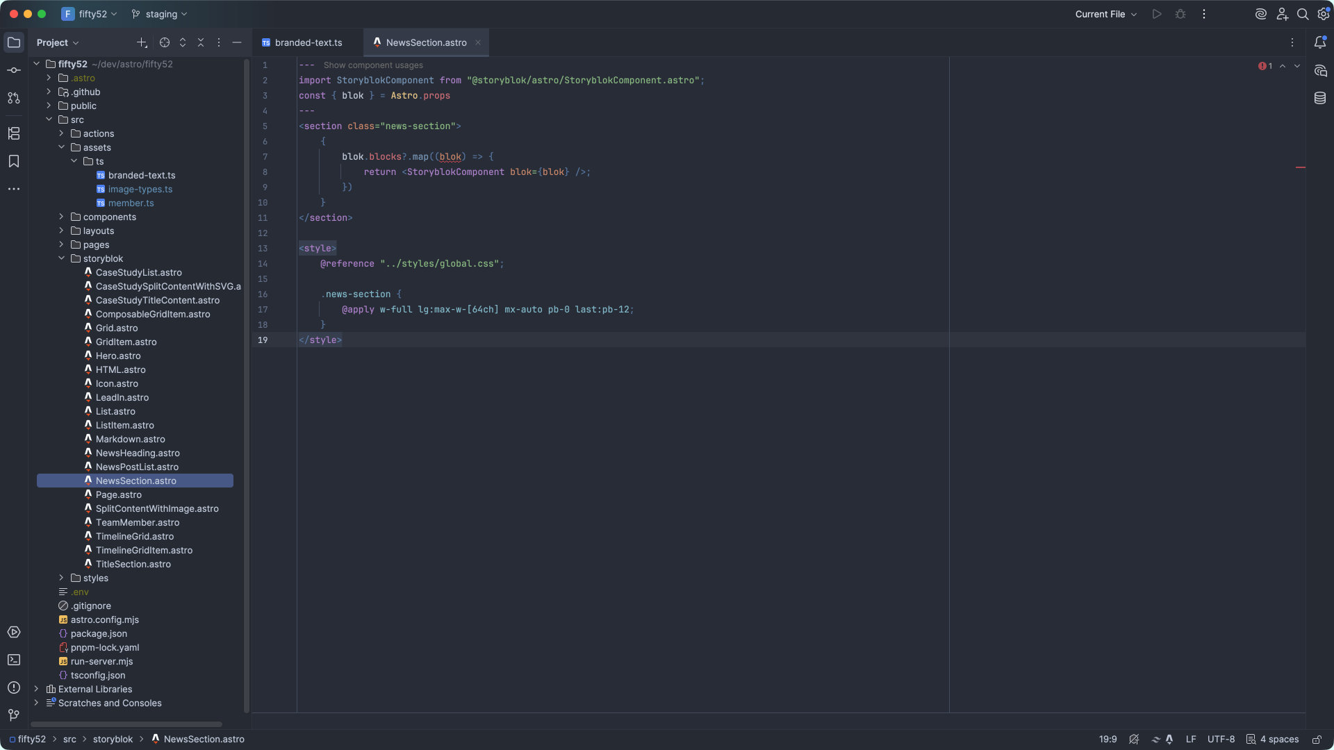 Earlier this month I was ready to launch this version of Fifty52 as a Laravel Folio-based project, everything was done down to the SEO and then something happened; I decided to go look at Astro. I don’t remember if it was because I saw something mentioning it on social media, a desire to just look up alternatives to Folio, or me remembering Astro from looking at it a while ago and briefly skimming the docs before telling myself “not now”.